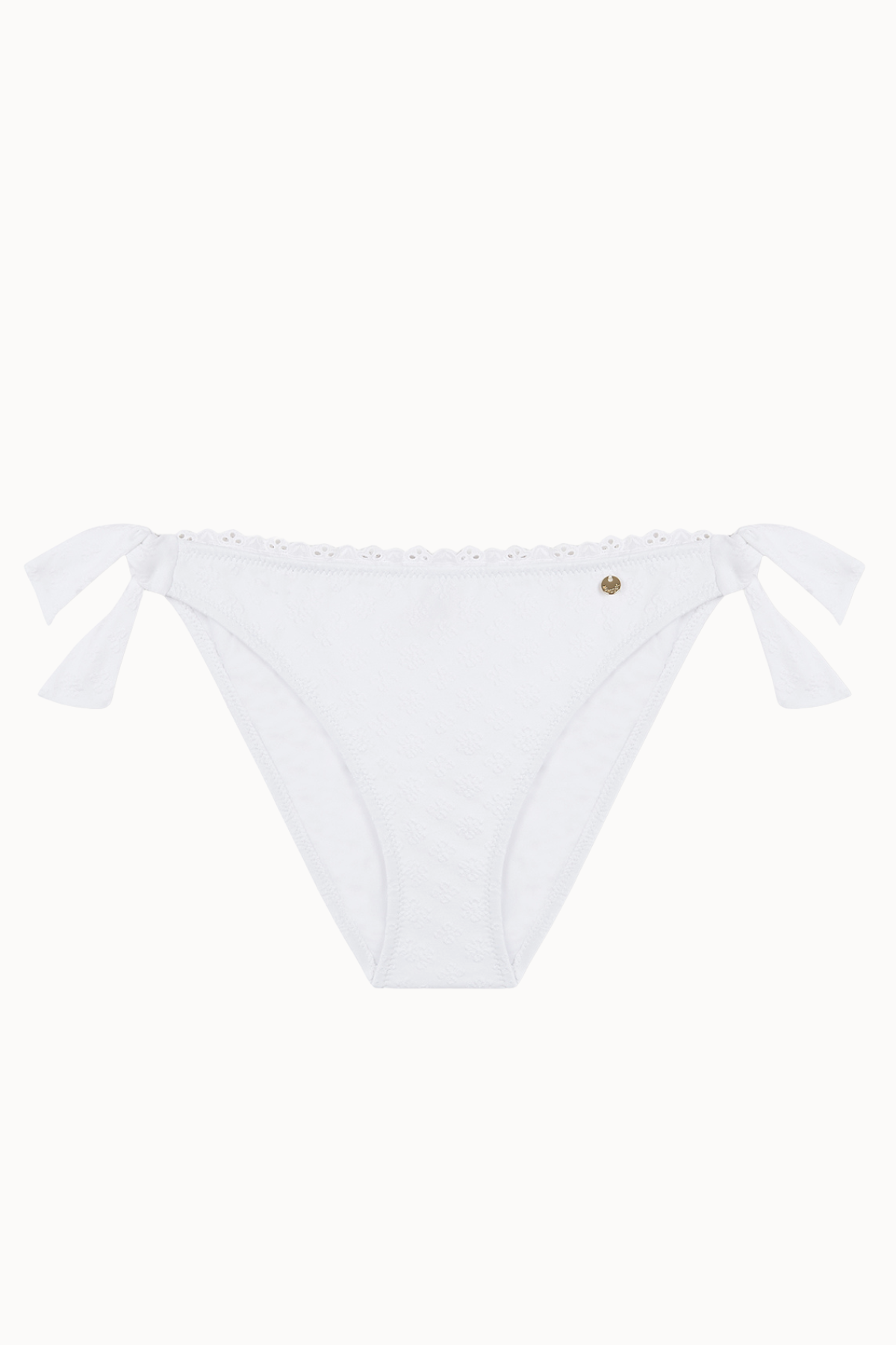 A Bohodot classic, the Bottom Normal. Adjustable with side ties and in a white jacquard pattern that mimics Swiss embroidery. It's a favorite pattern for those looking for comfort and coverage.