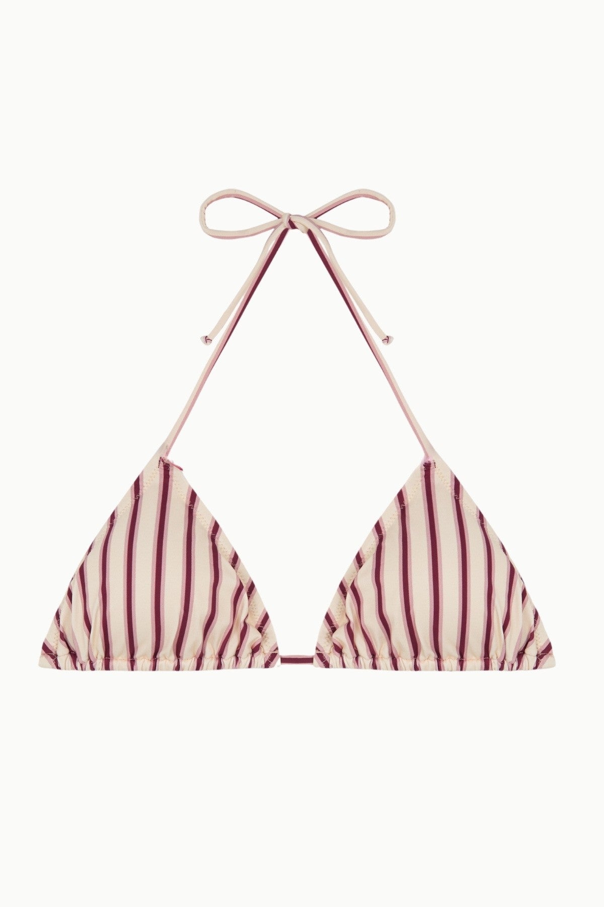 The Cannelle Top TR, made from 100% recycled fabric with vertical stripes. A very special piece for your bikini collection.