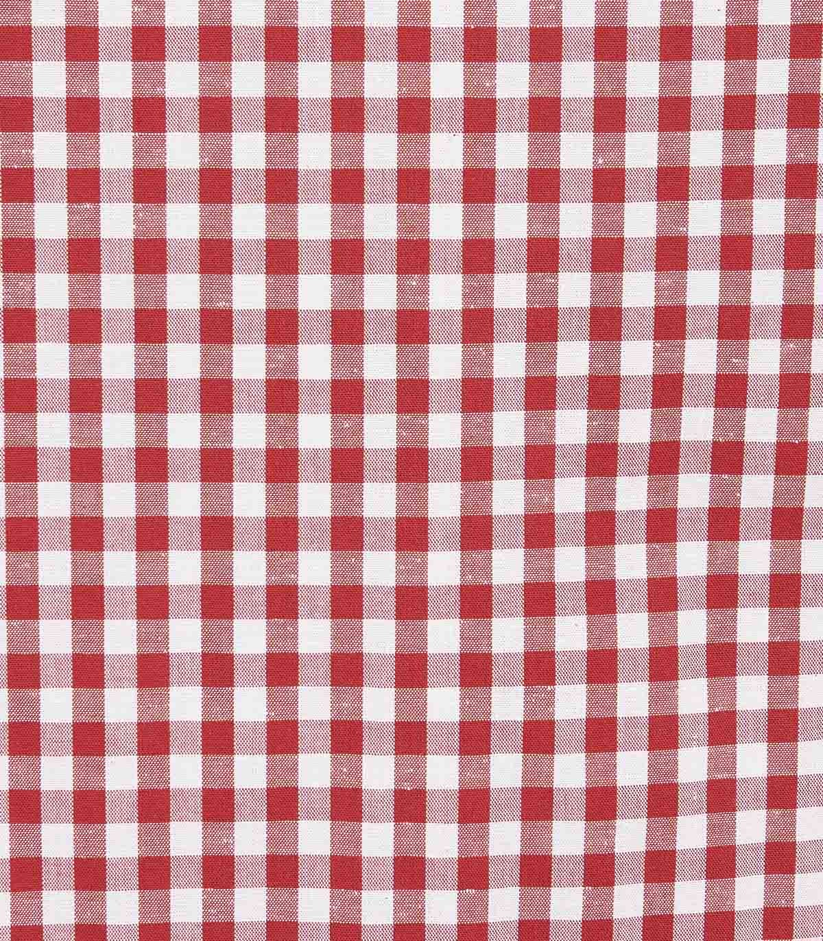 Pyjama pants with ruffles at the hem, made from red and beige checkered cotton fabric.