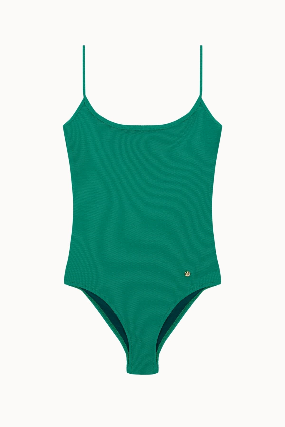 The Colline Onepiece Basic is a guaranteed choice for a stylish and comfortable summer. Our Best Seller: a classic swimsuit with a round neckline, thin straps, and an open back. One of the most popular colors in our collection, an intense emerald green.