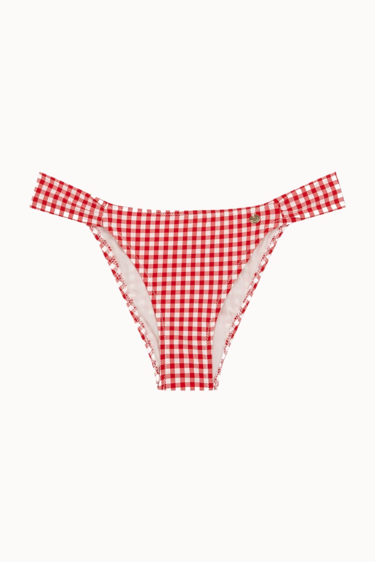 Semi-Brazilian Bikini Bottom in Red and White Gingham Fabric