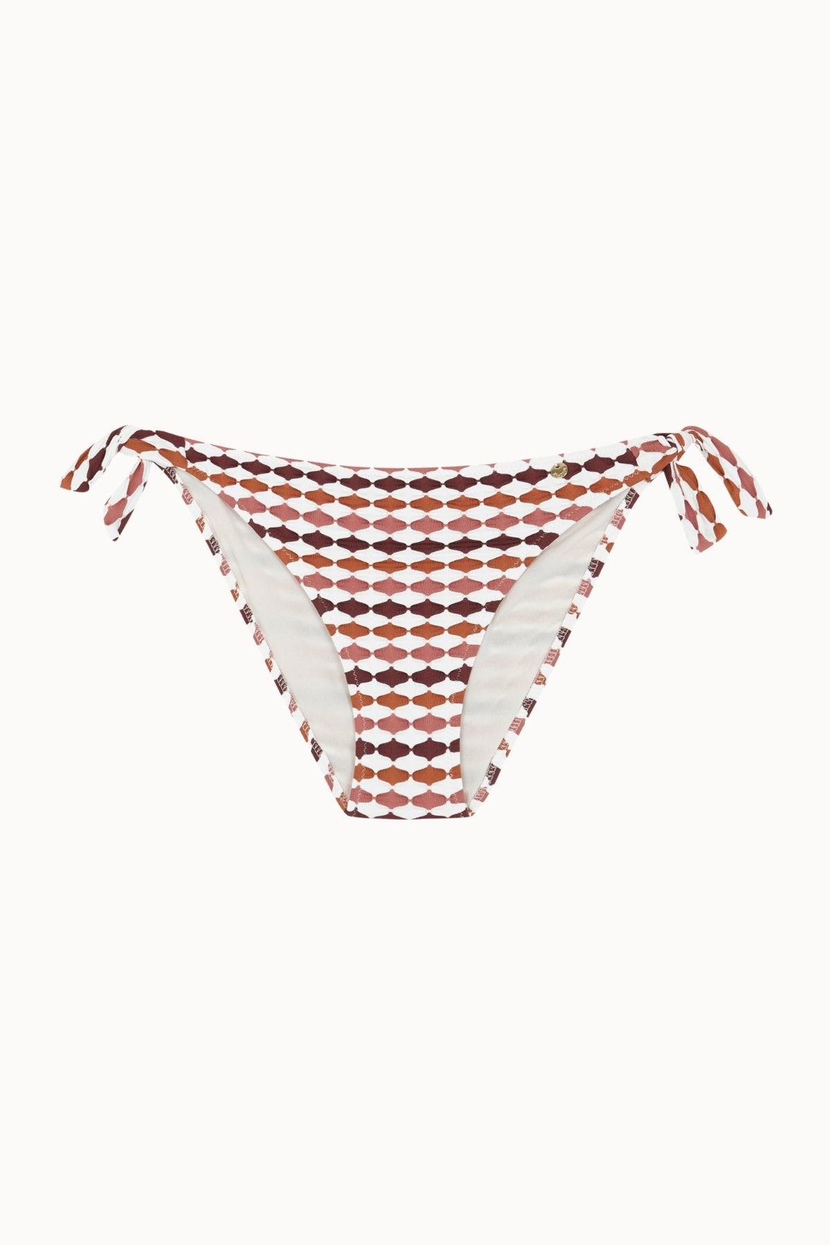 The Jeanne Bottom B/N is a classic-cut bikini bottom with adjustable side ties for a comfortable fit. The wave-structured fabric in terracotta, mauve, brown and ecru provides an elegant, timeless and flattering style.