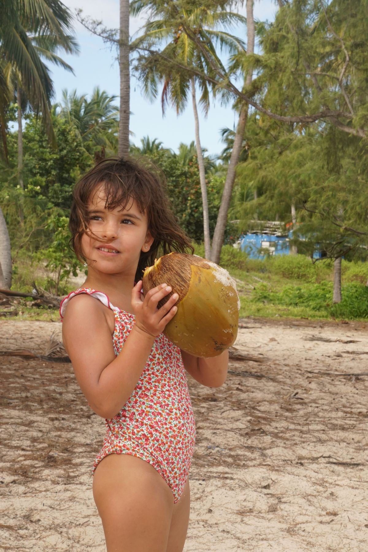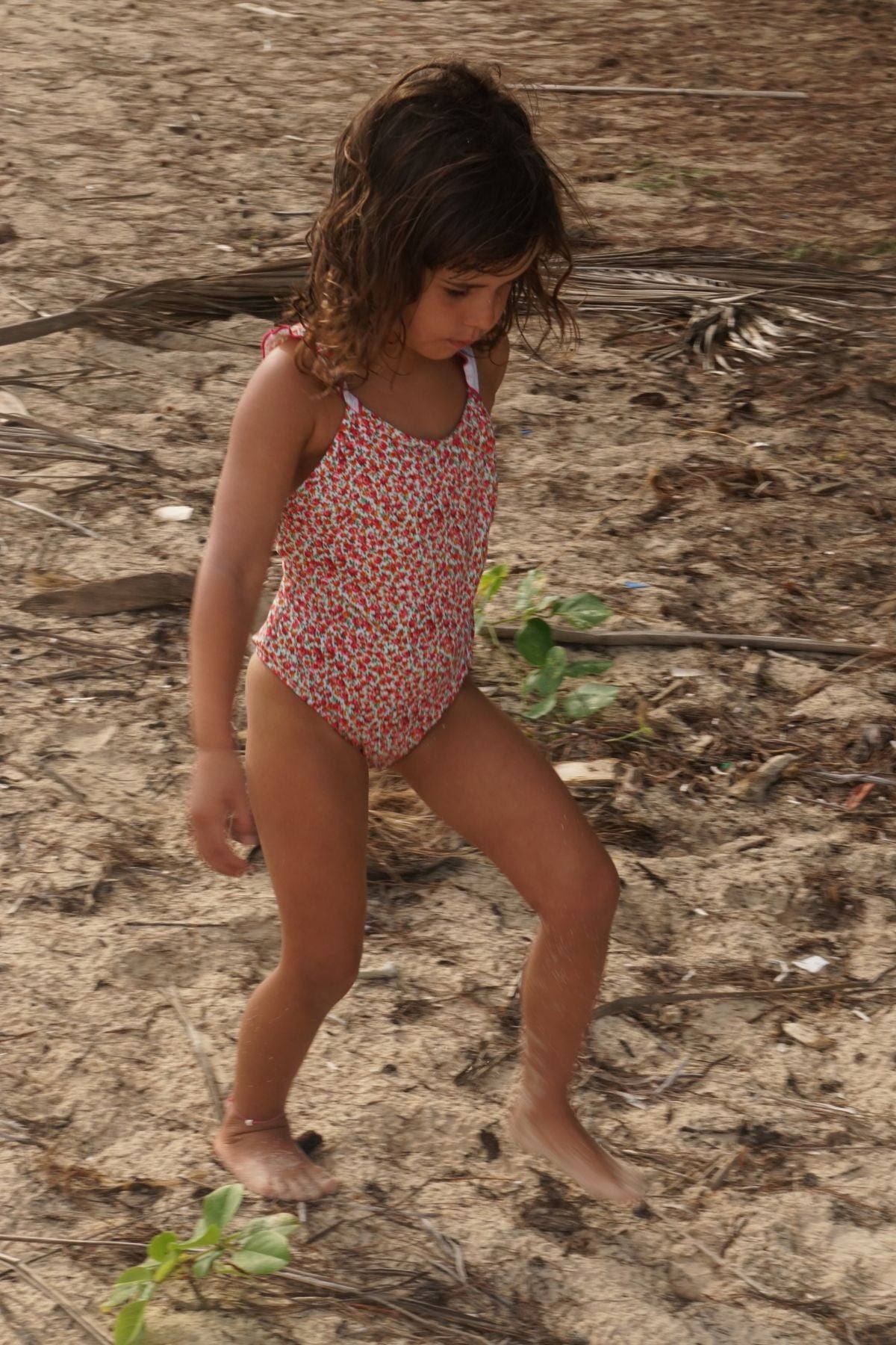 Girl’s swimsuit with a crossover back and frilled straps. Flowers and frills, the most romantic combination in the collection. Made from 100% recycled floral print fabric. Available in a matching design for women.