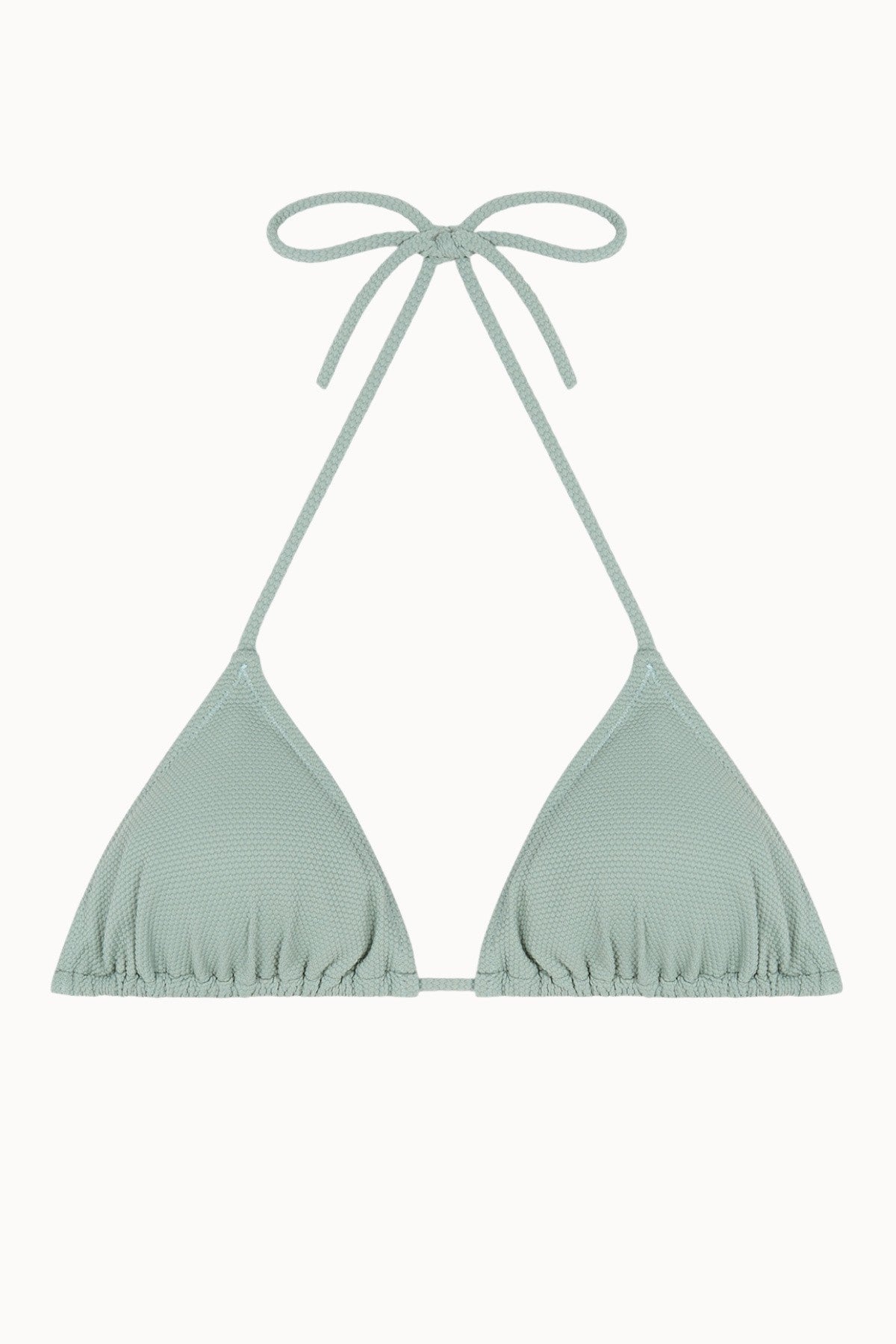 Simple and timeless, this is the Mousse Top Tr. Timeless for its light khaki green tone in piqué fabric, and simple for its straight lines creating a fully adjustable curtain bikini. Combine it with any bottom from the Mousse collection.