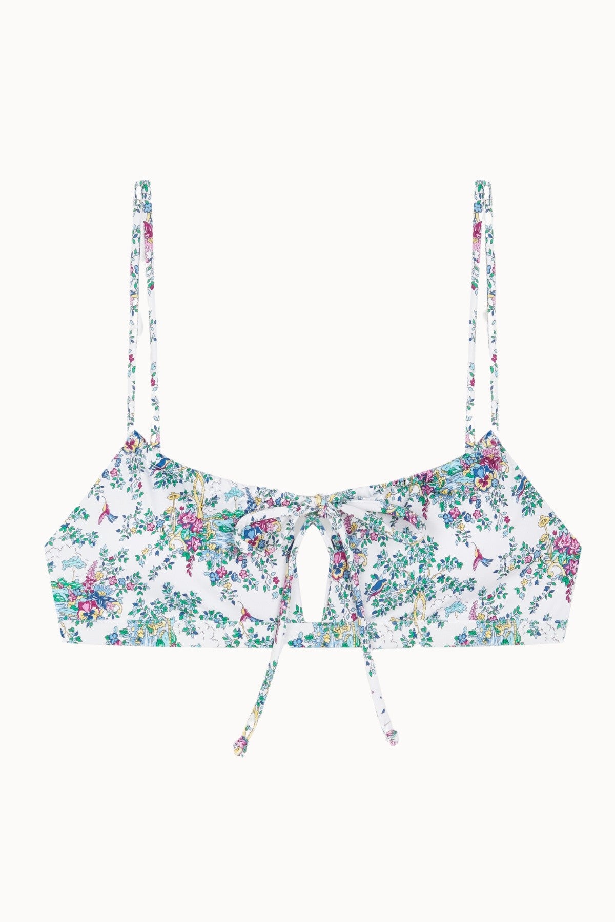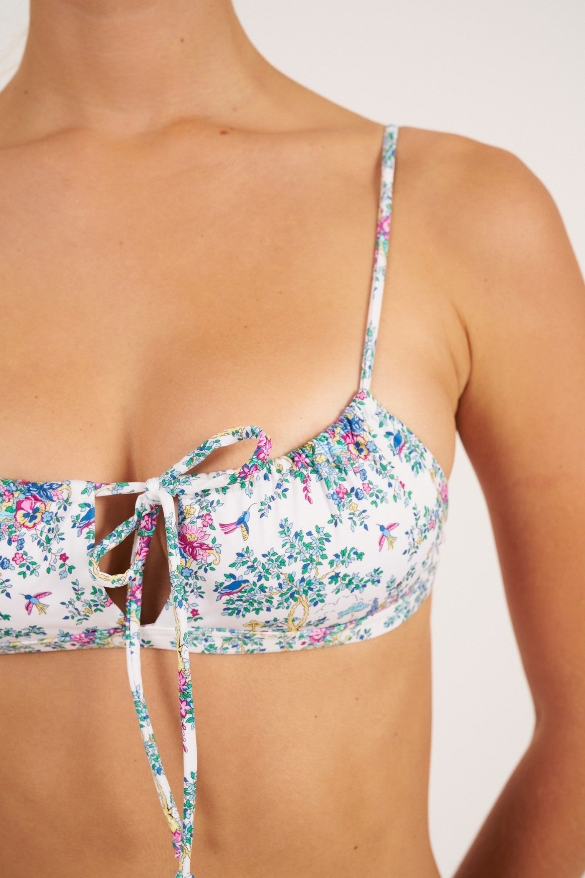 The iconic Bohodot Med Top arrives in an exclusive Toile de Jouy print on a white background. A bikini with a flattering neckline and an adjustable central tie, offering both style and comfort in one piece.