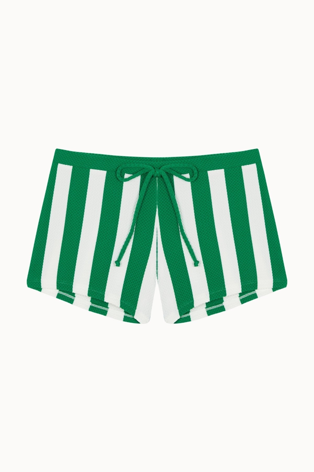 The must-have piece of the season: the Plage Short. Made from green and white striped jacquard fabric, perfect for pairing with your favourite bikini from the collection.