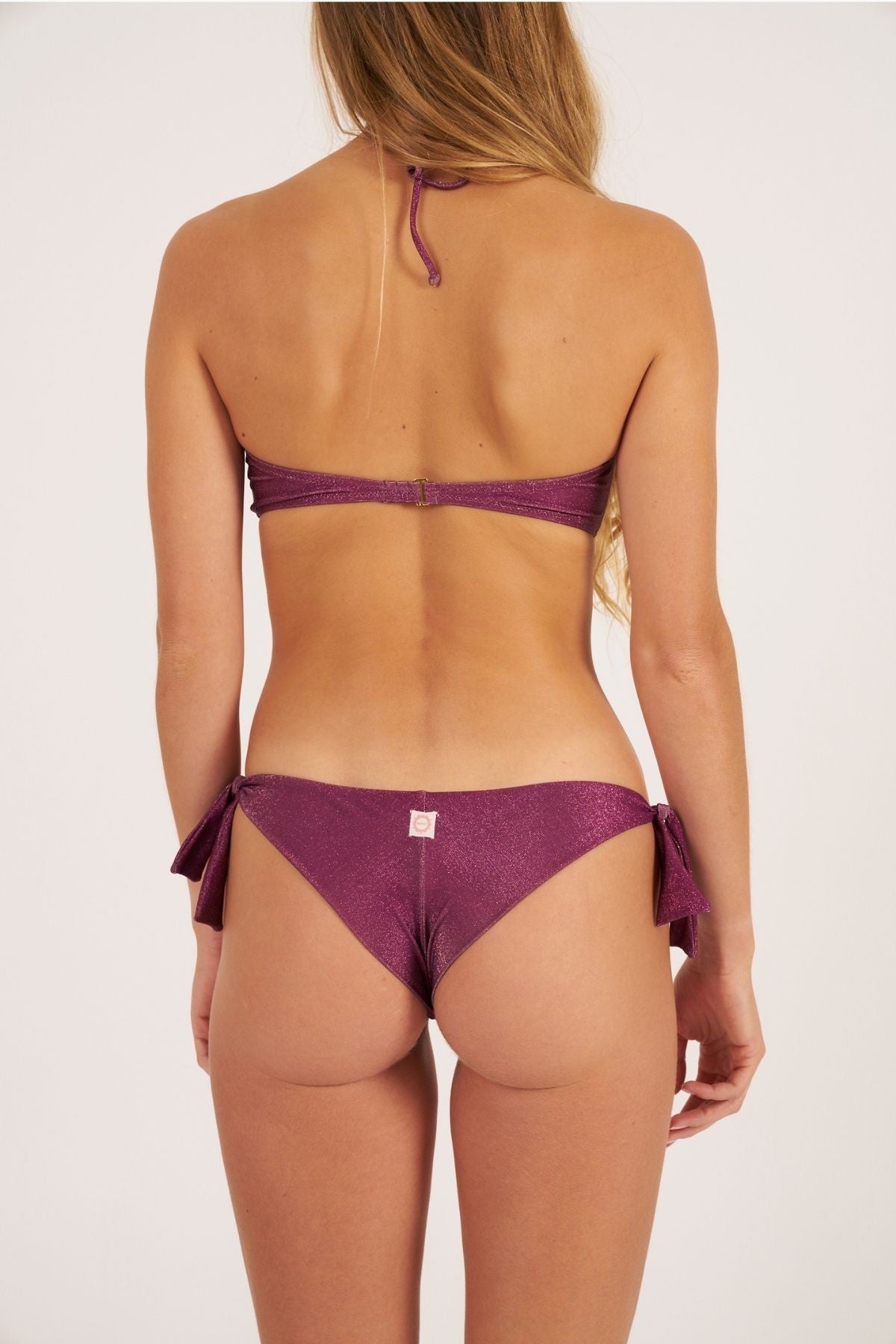 Adjustable Brazilian Bikini Bottom in Plum Lurex Fabric