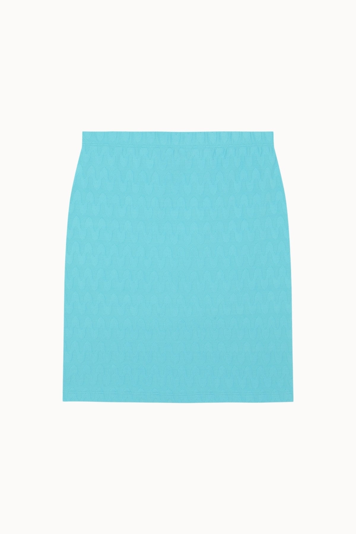 Meet the Rivière Mini Skirt: a straight silhouette with an elastic waistband, blending comfort and elegance. Crafted in a wavy jacquard fabric in blue. Perfect to wear with your favourite bikini from the collection!