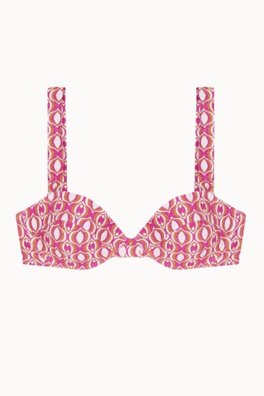 Bikini Balconet con Estampado Geométrico Fucsia Uno de los bikinis más especiales de la colección, combinando las formas geométricas con el lúrex y las estructuras. Nos encanta combinarlo con la Retro B/Alta para un...