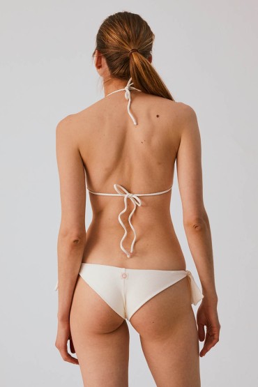Bikini Brasileño Ajustable de Color Crudo Con tiro bajo, cobertura brasileña y lazos laterales es una de las braguitas que lleva en nuestras colecciones más de 10 años y sigue siendo un top ventas. El partido trasero...