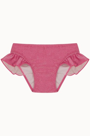 Braguita de Bikini para Niña con Volante y Fruncida de Color Rosa Fucsia  Braguita de bikini con volante para niña y con la parte de atrás fruncida en un tejido de piqué de color fucsia. Disponible a conjunto para...