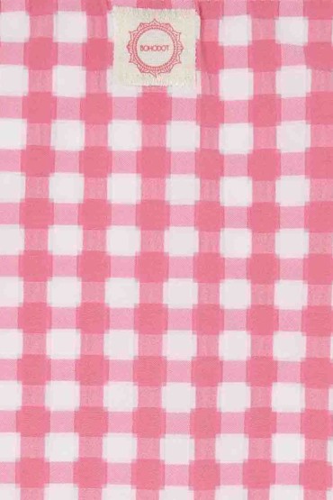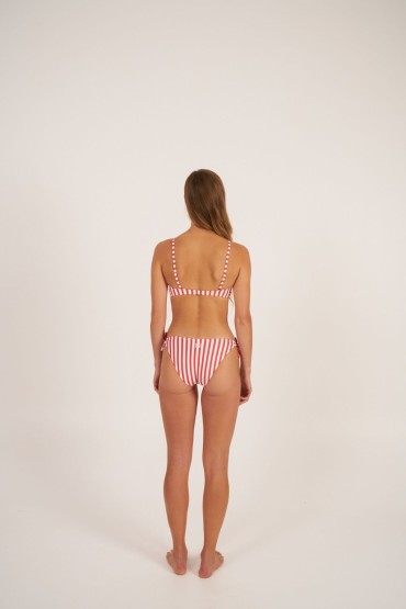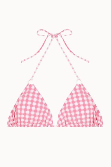 Bikini Triángulo Ajustable a Cuadros Rosas y Blancos Nuestro clásico bikini de cortina en un tejido premium de cuadros rosas y blancos y el detalle de los aritos en plástico 100% reciclado. El Sicilia Top TR Aros...