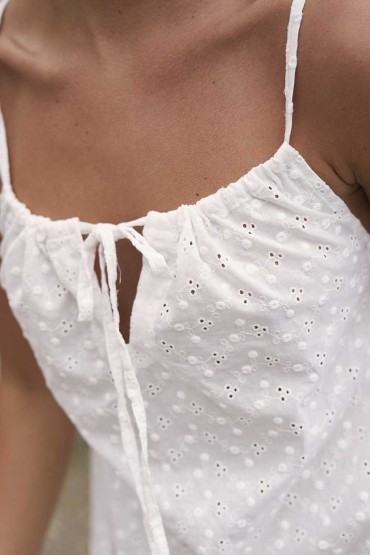 Vestido con volantes, confeccionada con tejido bordado suizo. 100% algodón. 100% hecho en España.