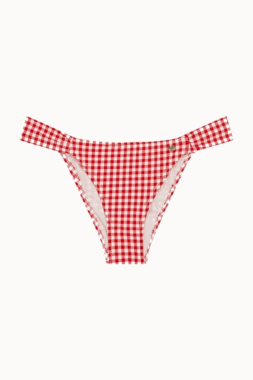 Bottom de Bikini Semibrasileña en Tejido de Vichy Rojo y Blanco Una de nuestras braguitas de bikini más favorecedoras, la Bottom Sand. Sus tiras anchas a la cadera la convierten en un modelo muy cómodo y versátil que...