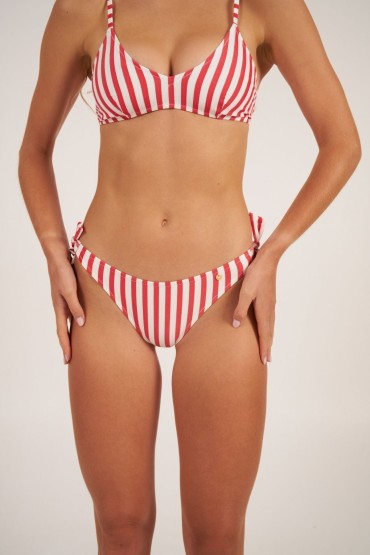 Braguita de Bikini con Cobertura Completa a Rayas Rojas y Crudas Un patrón clásico en Bohodot. La Crabe Bottom Normal está confeccionada en un tejido de rayas en tonos rojo y crudo con un hilo de lúrex plateado que le...