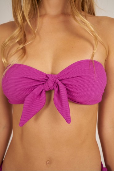 Bikini Bandeau con Lazo en Color Buganvilia El diseño perfecto para tomar el sol, nuestro top Buganvilla Bandeau Lace se convertirá en tu aliado perfecto para este verano. En tejido de piqué, con foams extraíbles y el...