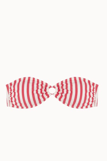 Bikini Bandeau a Rayas de Color Rojo y Crudo con Lúrex Plata  Déjate enamorar por el Crabe Top Bandeau Aro. Una silueta sin tirantes perfecta para tomar el sol, con el detalle del aro central y cierre multiposición....