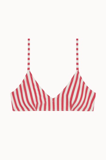 Top de Bikini con Escote en "V" a Rayas en Rojo y Crudo con Lúrex Plateado Cómodo y con buena sujección. Un diseño favorecedor y atemporal que cuenta con tirantes ajustables y cierre posterior multiposición para un...