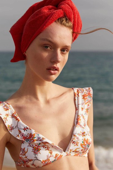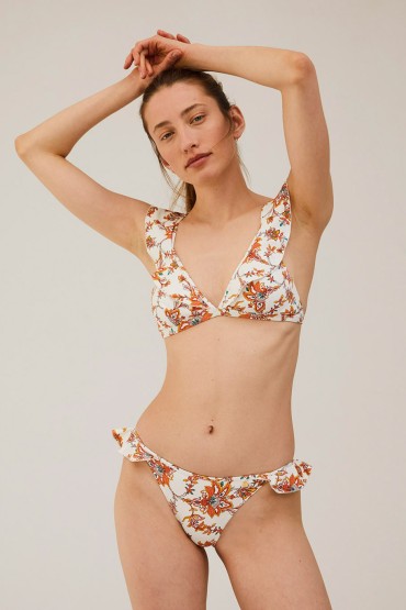 Top de Bikini con Volantes de Estampado Exclusivo Una silueta romántica diseñada con unos favorecedores volantes en el escote. El Flora Top Vol es una pieza especial y única para esas ocasiones más especiales.