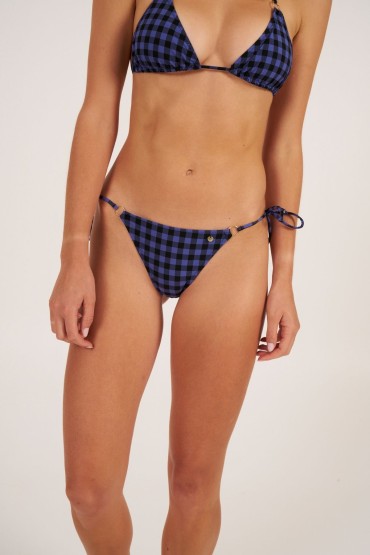 Braguita de Bikini con Lazada y Aros en Dorado en Tejido Vichy Braguita de bikini con cobertura semibrasileña, con el detalle de dos aros dorados a cada lado. Confeccionada en un tejido vichy muy especial, en color...