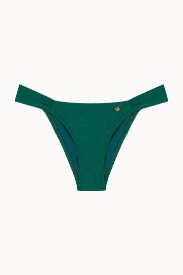 Braguita de Bikini Semibrasileña en Jacquard de Palmeras de Color Verde Botella La Palms Bottom Sand está diseñada en un tejido de jacquard de palmeras en verde botella. Sus tiras anchas en la cadera y su cobertura...