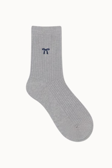 Calcetines de Canalé Gris en Algodón / Detalle de Lazo en Azul Marino Descubre los calcetines de algodón que combinan comodidad, calidad y un diseño femenino que hace especial cualquier look. Un diseño de canalé en...