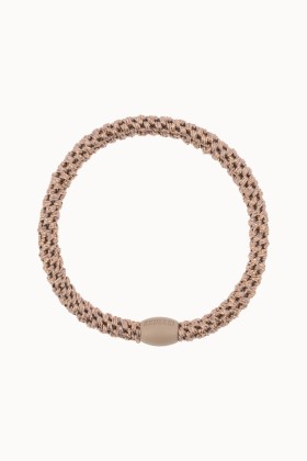 Goma de Pelo KKNEKKI Slim en Tono Beige con Glitter Una goma de pelo famosa por su técnica de tejido única, que la hace ideal para cualquier tipo de cabello. Son resistentes y cómodas, perfectas para recogidos o para...