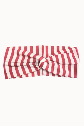 Diadema para el Pelo a Rayas de Color Rojo y Crudo con Hilo de Lurex Color Plata Diadema o turbante confeccionado en un tejido a rayas de color rojo y crudo con hilo de lurex color plata. Protege el pelo ya que todos...