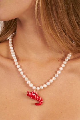 Collar de Perlas con Charm de Langosta Un toque divertido para el día a día con el collar Lobster. Hecho con perlas de río y un charm de langosta en cristal soplado. Hecho con amor en España.