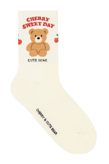 Chaussettes Beiges avec Ourson et Cerises Pour un look de tous les jours qui ne manquera pas de vous faire craquer, jetez un coup d'œil à la chaussette Sweet. Un modèle beige avec des détails d'ours, des cerises et...