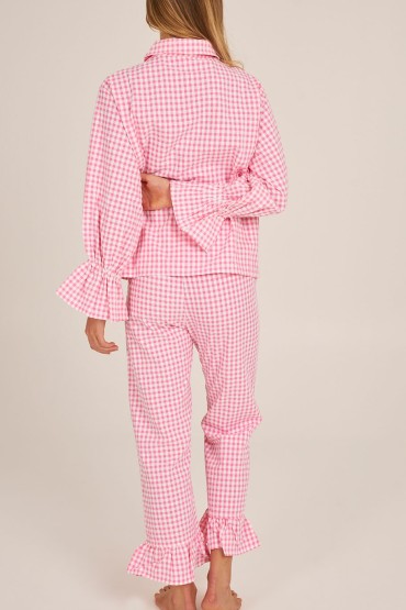 Nos pyjamas sont disponibles dans une grande variété d'imprimés et de couleurs afin que vous puissiez exprimer votre personnalité même lorsque vous vous reposez. Que vous préfériez les motifs à volants classiques ou les imprimés audacieux, ne manquez pas notre collection de chouchous et de bandeaux assortis pour un look complet pendant votre temps de repos !