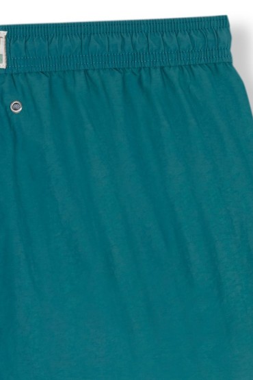 Maillot de Bain Homme à Rayures Turquoise et Blanches  Maillot de bain pour homme en tissu seersucker à rayures vert kaki et écru. Doté d’une ceinture élastique et d’un cordon de serrage ajustable. 100% Fabriqué à...