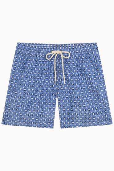 Maillot de Bain Bleu pour Homme avec Imprimé Cachemire Cravate  Maillot de bain pour homme en tissu uni bleu lavande foncé avec un imprimé cachemire façon cravate. Doté d’une ceinture élastique et d’un cordon de...