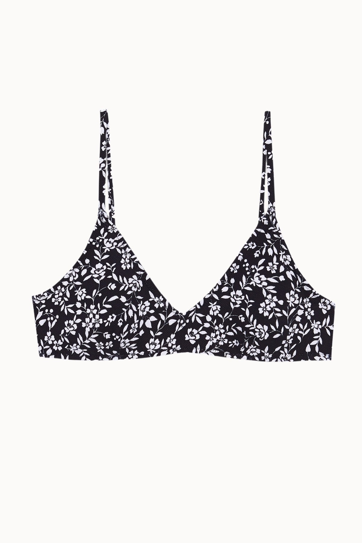 Top de Bikini avec Décolleté à Imprimé Floral Noir et Blanc