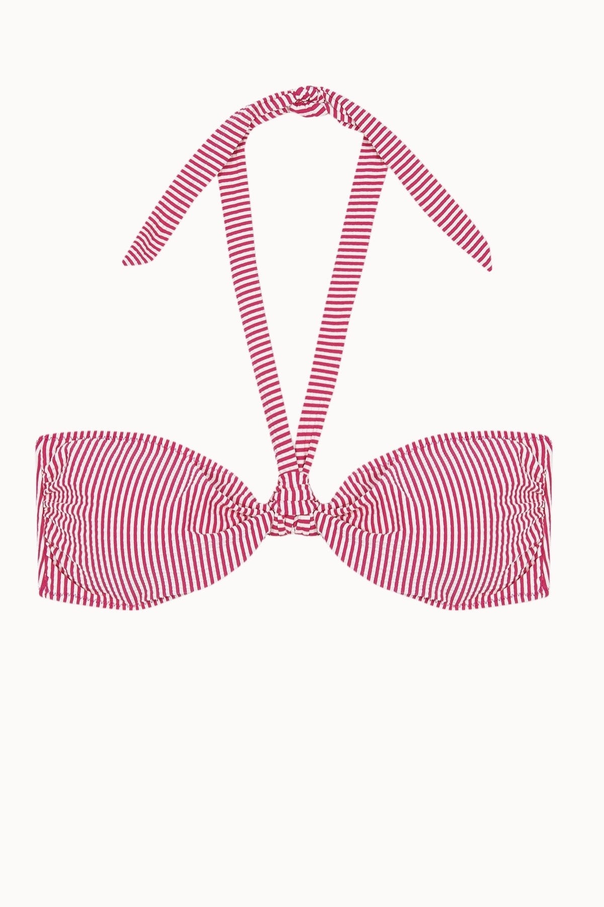 Bikini Bandeau avec Décolleté Halter à Rayures Fuchsia et Écru