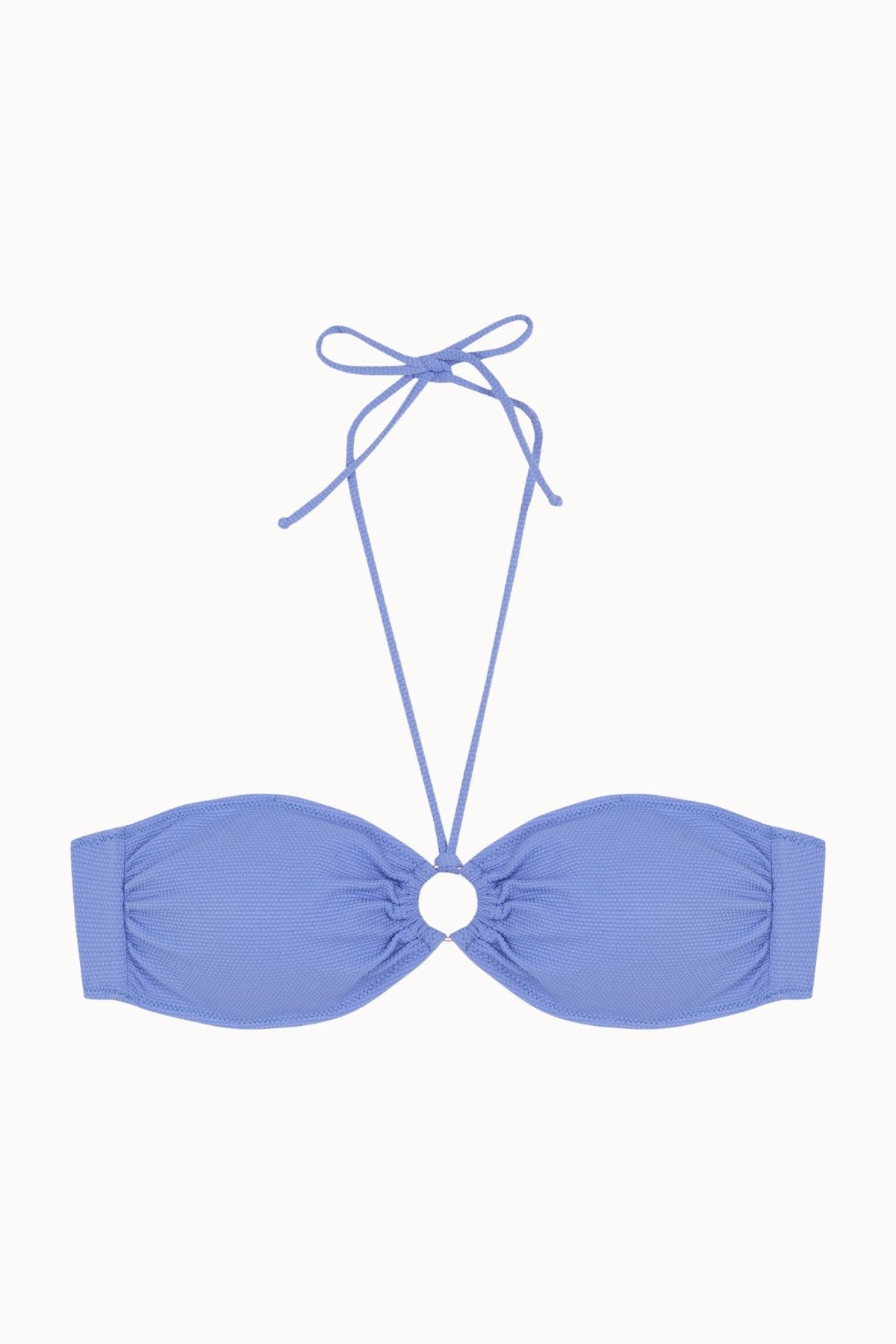 Haut de Bikini Bandeau avec Anneau Doré en Piqué Bleu Lavande