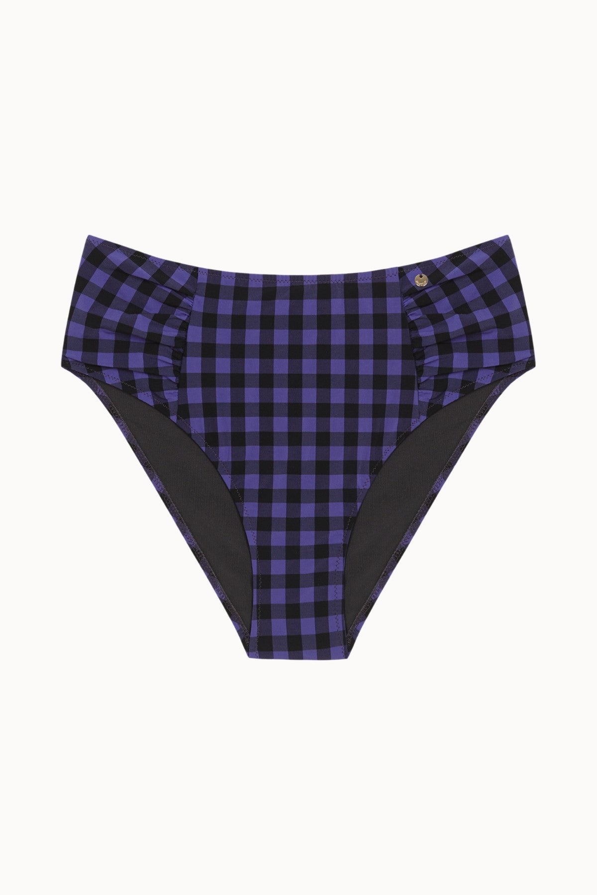 Bas de Bikini Taille Haute en Tissu Vichy Noir et Lavande