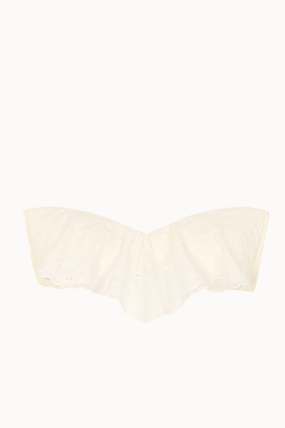- Tissu en piqué naturel avec volant en broderie suisse et dentelle.