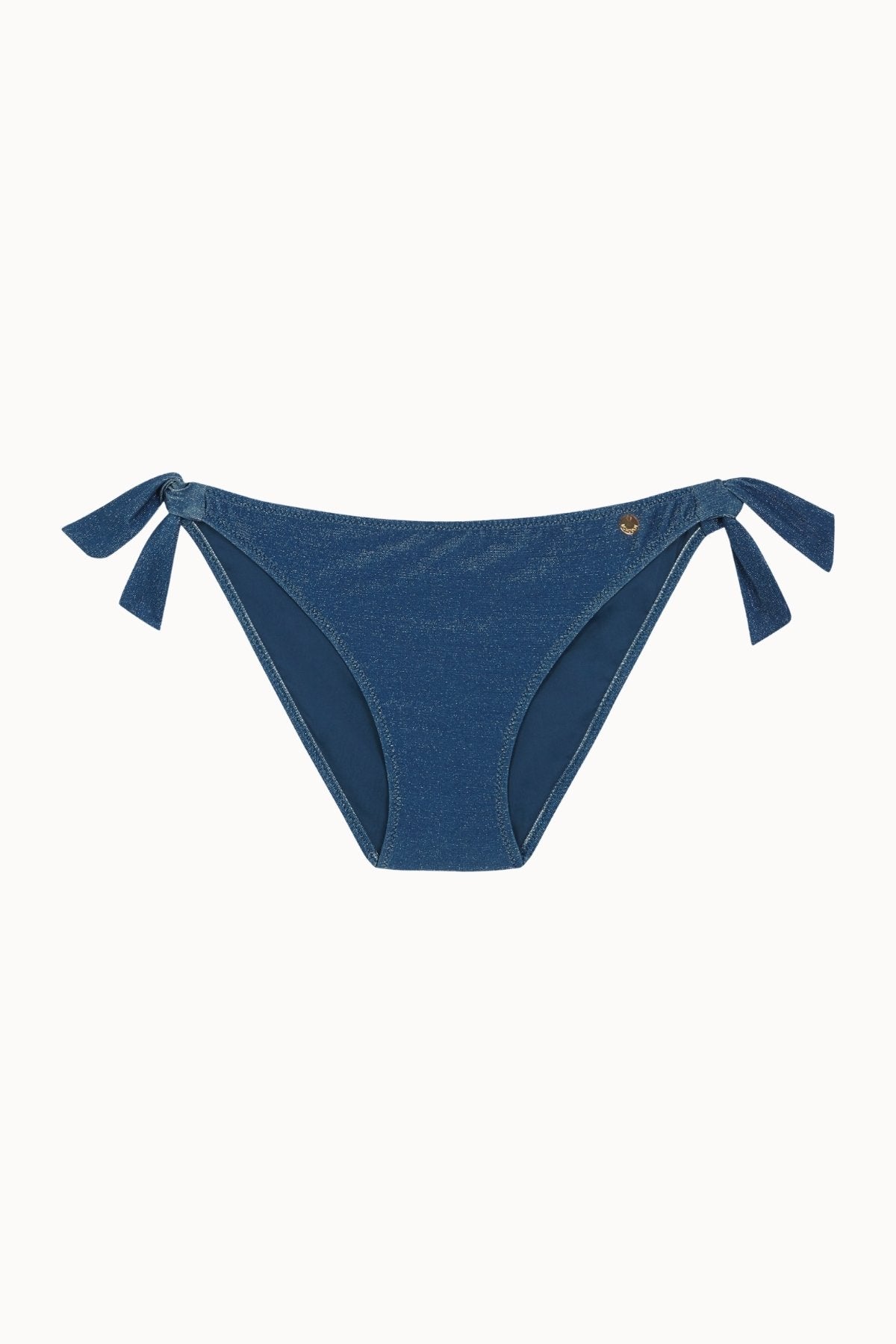 Culotte de Bikini Classique à Liens en Lurex Bleu Marine