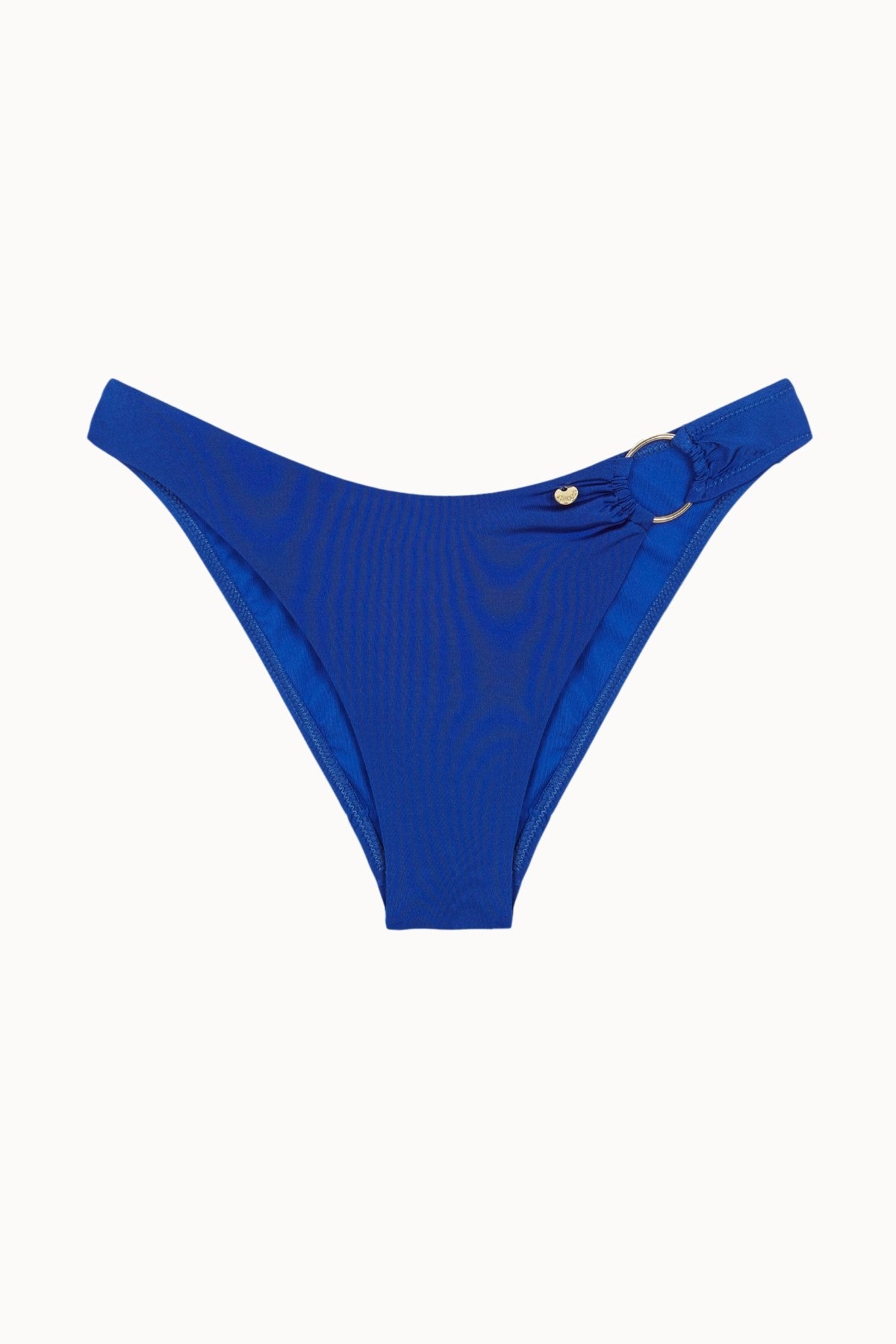 Bas de bikini Taille Haute avec Anneau Doré Latéral en Tissu Satiné Bleu Électrique