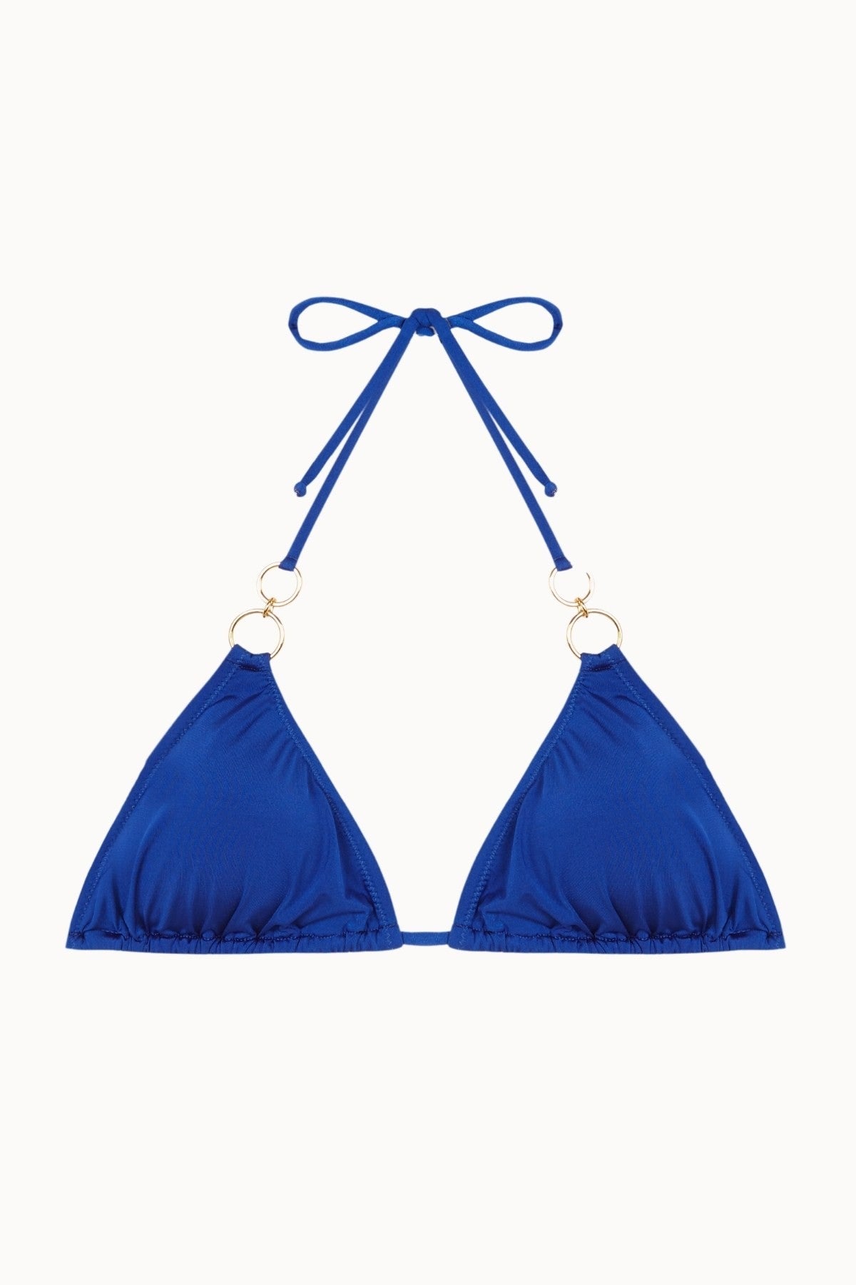 Haut de Bikini Triangle avec Anneaux en Tissu Satiné Bleu Électrique