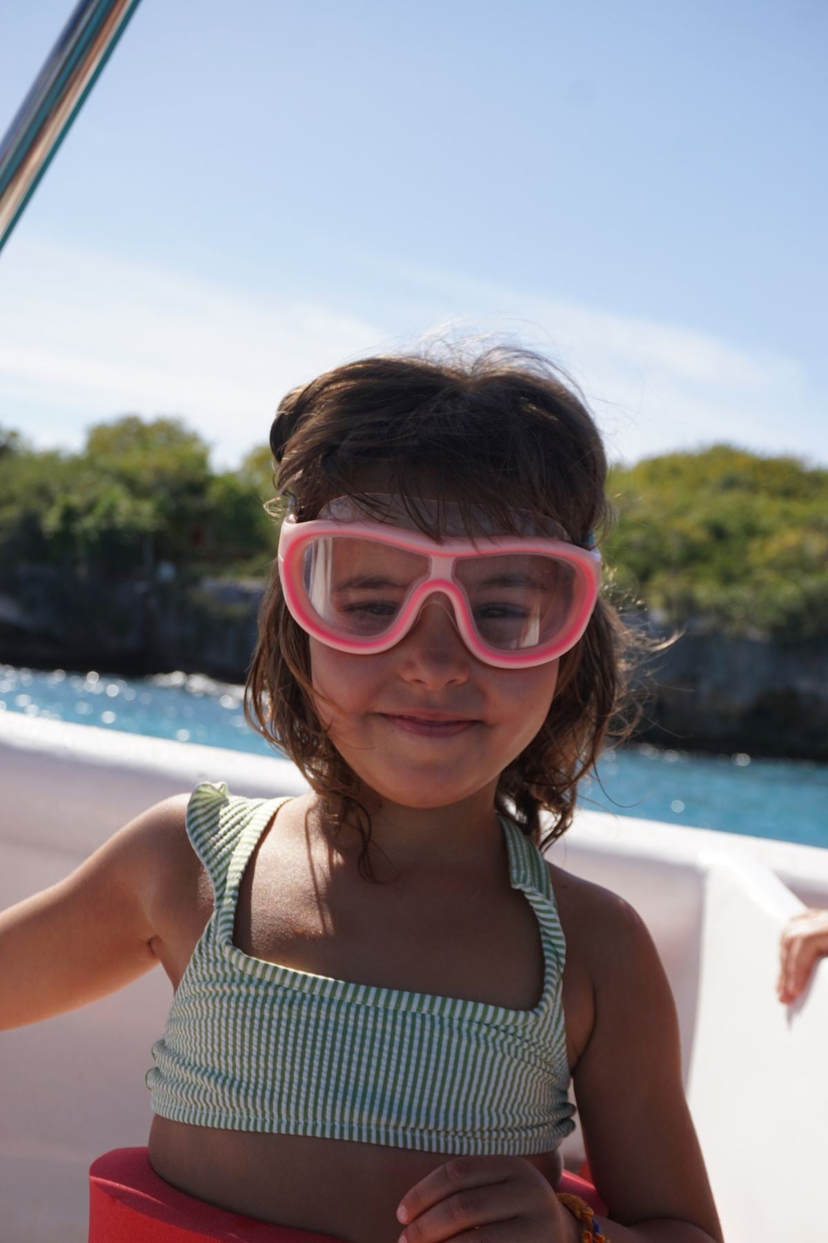 Haut de Fille avec Bretelles Volantées à Rayures Vertes et Écrues