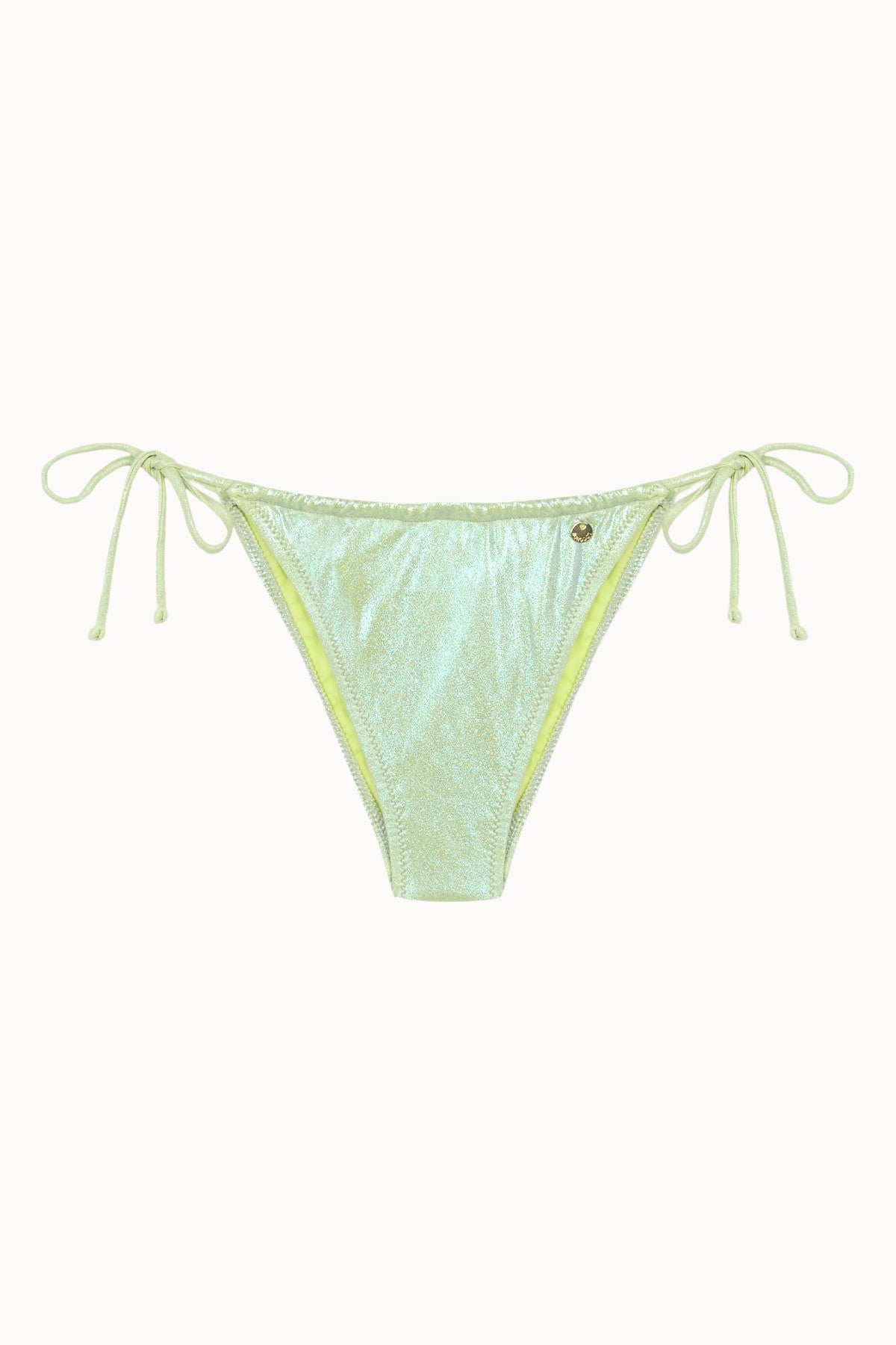 Bas de Bikini Brésilien Ajustable en Tissu Métallisé Vert Pomme