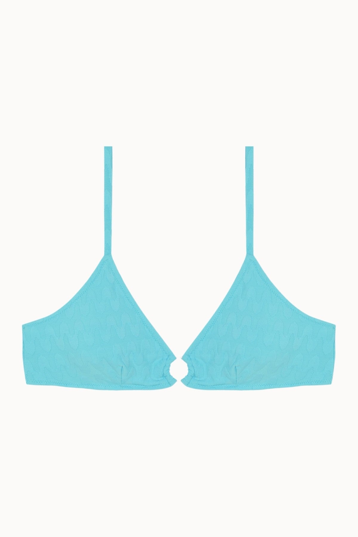 Le Rivière Top Aura Aro, l'un de nos modèles les plus spéciaux. Conçu pour offrir un bon maintien, son armature métallique dorée au niveau du décolleté ajoute une touche de distinction qui le rend vraiment unique. Confectionné en jacquard ondulé bleu cyan.