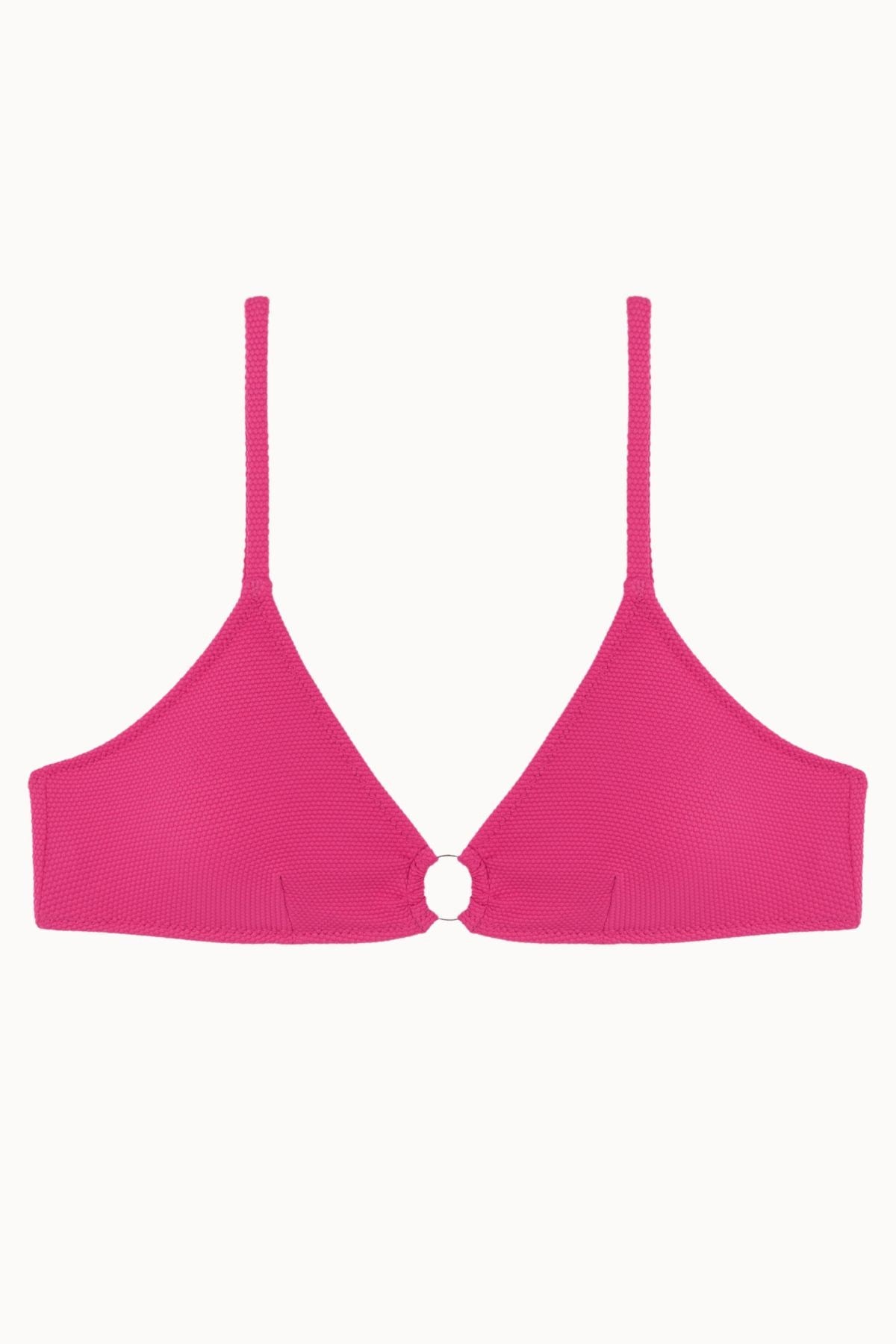 Top de Bikini con Escote en Uve de Color Rosa Fucsia