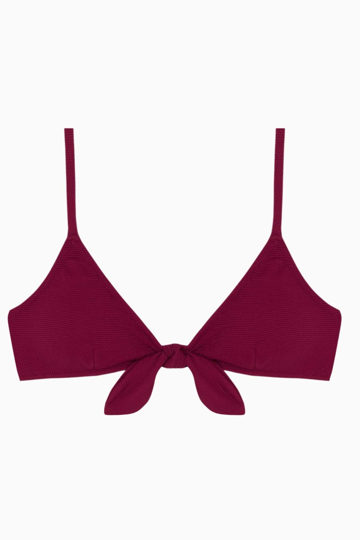 Una de las formas más buscadas: el Top Lace. En esta ocasión, llega en tejido de piqué granate para convertirse en una pieza clave de tu armario de verano. El lazo central aporta un toque femenino, aunque puedes personalizar tu look retirando el lazo si lo prefieres.