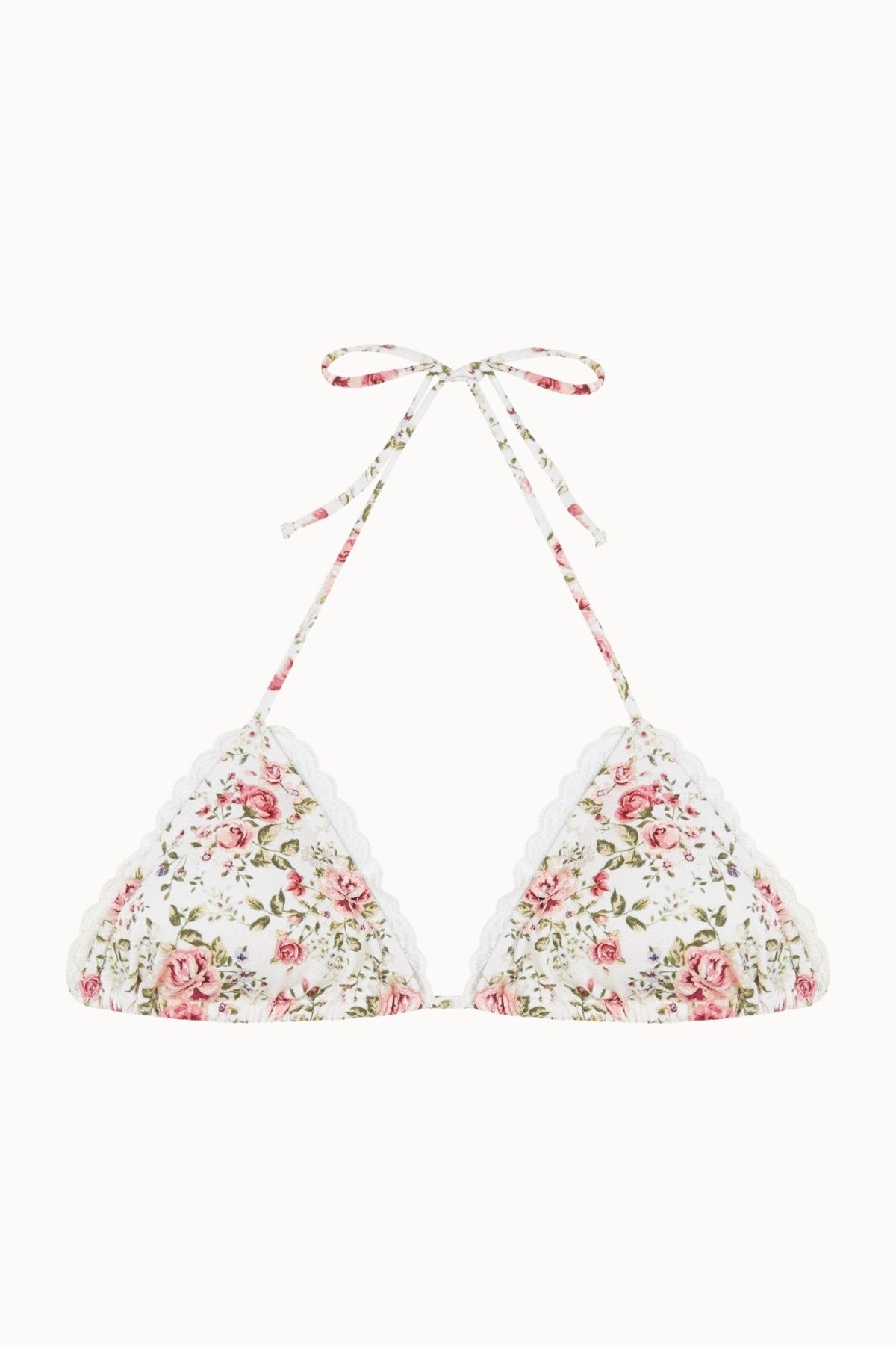 Top de Bikini Triángulo con Puntilla y Estampado Floral