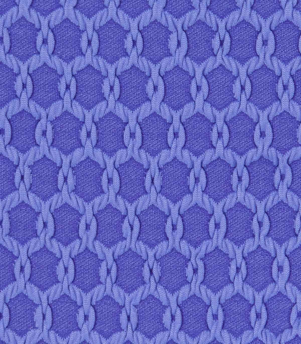 - Tejido con jaquard que hace fromas geométricas en color azul lavanda.
