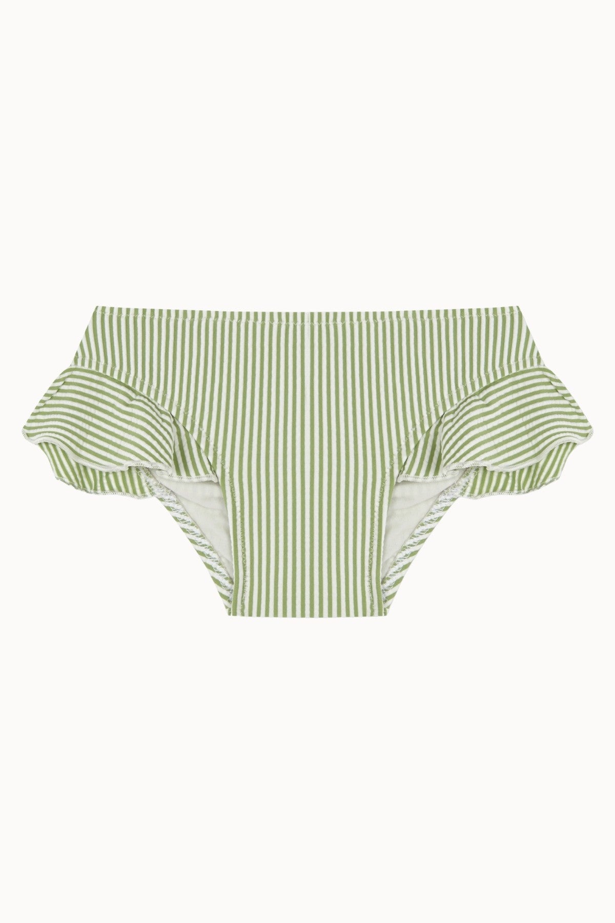 Braguita de Bikini para Niña con Volante y Fruncida a Rayas de Color Verde y Crudo