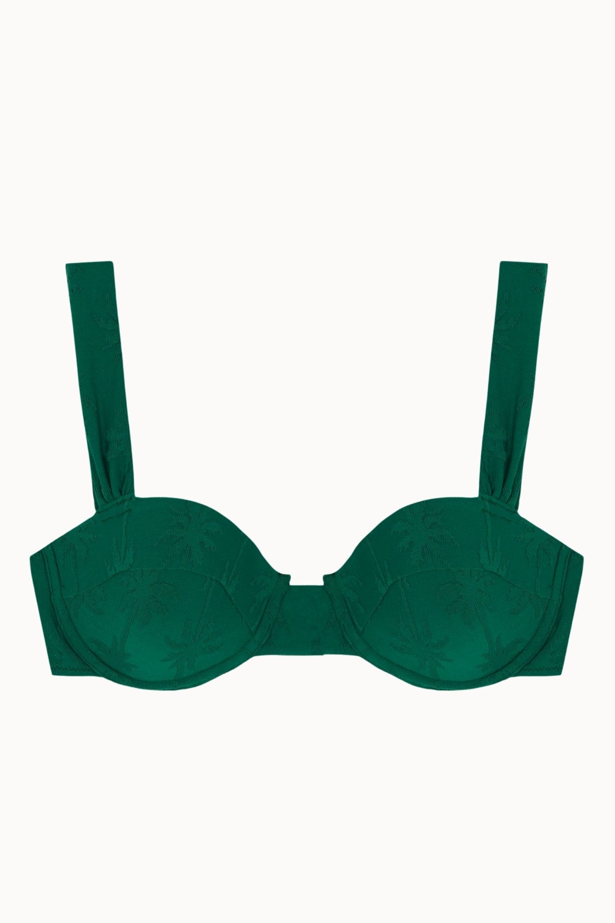 Top de Bikini Balconet en Jacquard con Palmeras Verde Botella